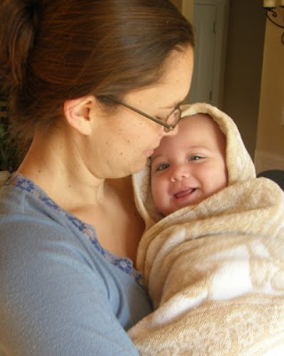 Modeling the dress Mommy made her. You will be seeing more of this because we are going to take her 6 month photos in it.