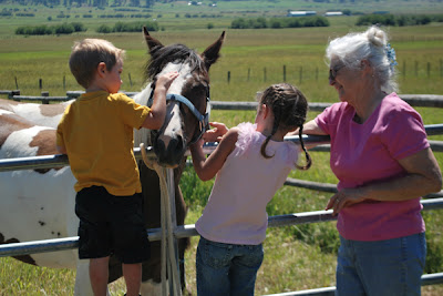 I took the kids up to New Meadows for a few days while Daddy went fishing! Tiana got to be lazy in the house since she didn't feel good still. She turned down horse back riding... which tells you how miserable she was! She loves horses! She did manage to make it down to see the colts though!